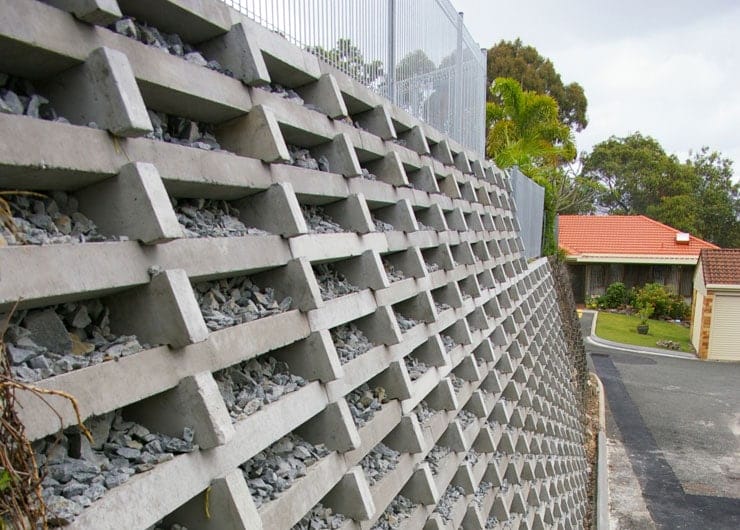 This type of retaining wall has been around for a long time and while they can be constructed from timber, they are most commonly made from prefabricated concrete blocks.